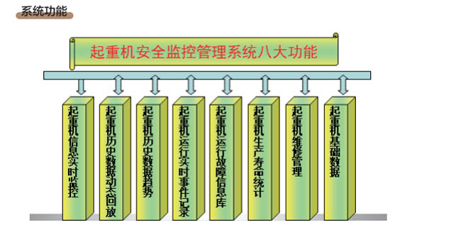 AGF系列起重機(jī)械安全監(jiān)控管理系統(tǒng)是我公司自主開發(fā)研制的產(chǎn)品,按照國質(zhì)檢特聯(lián)【2011】137號文件的要求,嚴(yán)格執(zhí)行國標(biāo):GB/T 28264-2017生產(chǎn),廣泛用于各行業(yè)大型起重設(shè)備機(jī)械、提升機(jī)、架橋機(jī)、港機(jī)、工程機(jī)械等,系統(tǒng)是為各種起重機(jī)的運(yùn)行監(jiān)視、診斷分析、設(shè)備預(yù)警與檢修維護(hù)而搭建的信息系統(tǒng)管理平臺。系統(tǒng)實時記錄起重機(jī)的運(yùn)行參數(shù)、操作記錄,當(dāng)滿足故障條件和設(shè)置預(yù)警值時,系統(tǒng)及時提醒和記錄各種事件信息,為起重機(jī)的操作人員和維護(hù)人員提供實時的、詳盡的歷史數(shù)據(jù)和分析報表。起重機(jī)安全監(jiān)控管理系統(tǒng)具有可靠穩(wěn)定性、靈活交互性、便捷易用性,是集實時監(jiān)控﹑故障報警﹑數(shù)據(jù)登錄﹑設(shè)備維護(hù)﹑運(yùn)行統(tǒng)計于一體的現(xiàn)代起重機(jī)綜合信息管理平臺。