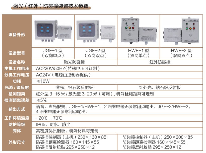 激光(紅外)防碰撞裝置技術(shù)參數(shù) 瀏覽:1200