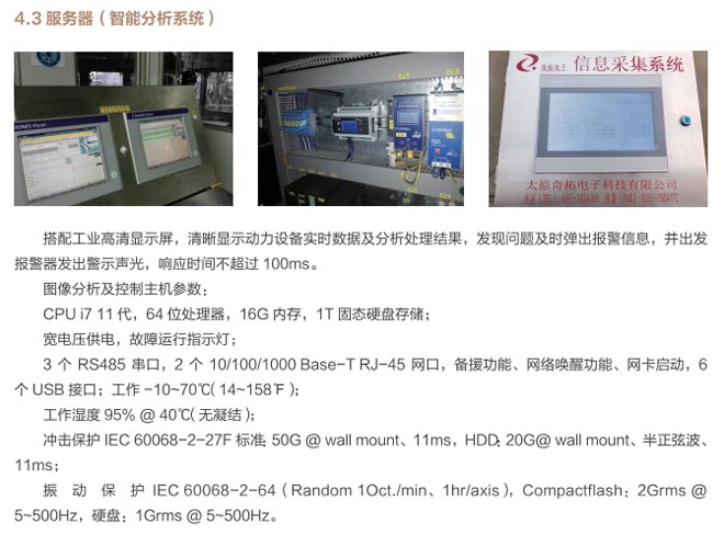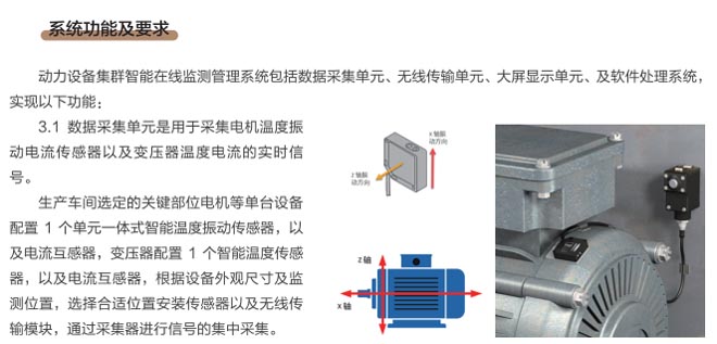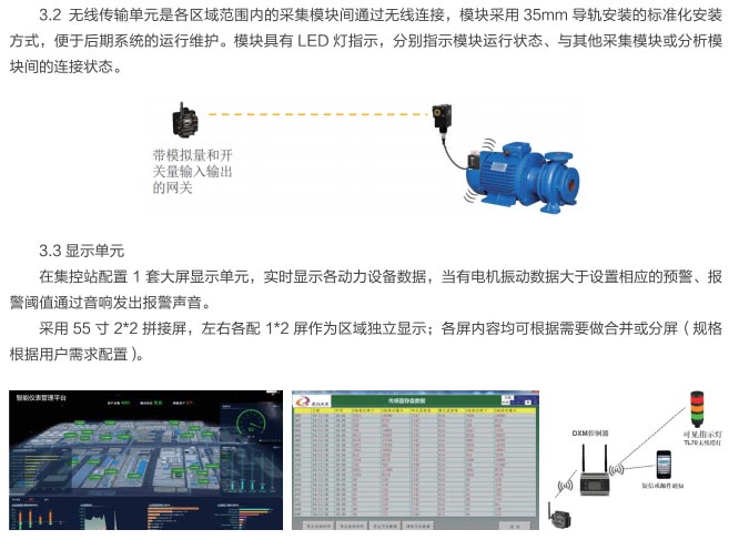 動(dòng)力設(shè)備集群智能在線監(jiān)測(cè)系統(tǒng)是通過(guò)智能遠(yuǎn)程運(yùn)維系統(tǒng)(RMS)完成工業(yè)生產(chǎn)線的電機(jī)、減速機(jī)、風(fēng)機(jī)、高低壓變電、泵閥等設(shè)備運(yùn)行狀態(tài)信息及故障信息檢測(cè),通過(guò)檢測(cè)設(shè)備的溫度、震動(dòng)、轉(zhuǎn)速、電流、電壓等數(shù)據(jù)實(shí)時(shí)分析處理運(yùn)行設(shè)備狀況,同時(shí)通過(guò)信息報(bào)警推送,智能分析設(shè)備運(yùn)行狀況并實(shí)時(shí)報(bào)警等功能,能迅速找到解決問(wèn)題的方法。通過(guò)在線檢測(cè)系統(tǒng)全面實(shí)現(xiàn)對(duì)關(guān)鍵設(shè)備的全生命周期管理,提高了設(shè)備有效運(yùn)維時(shí)間和效率,降低設(shè)備運(yùn)維成本,降低設(shè)備故障時(shí)間,減少現(xiàn)場(chǎng)人員維護(hù)量,降低維護(hù)人員的依賴性。